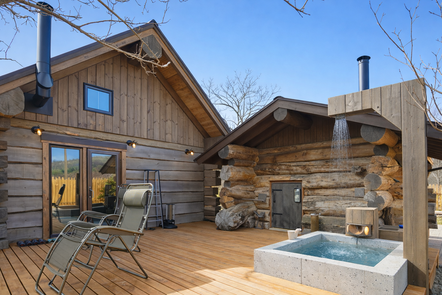 【 本日、新たなプレミアム ログコテージ完成! 】駅のホームから徒歩0分 群馬・水沼ヴィレッジ『本格薪サウナ付き “プレミアムログコテージ”』春の訪れとともに堂々公開!