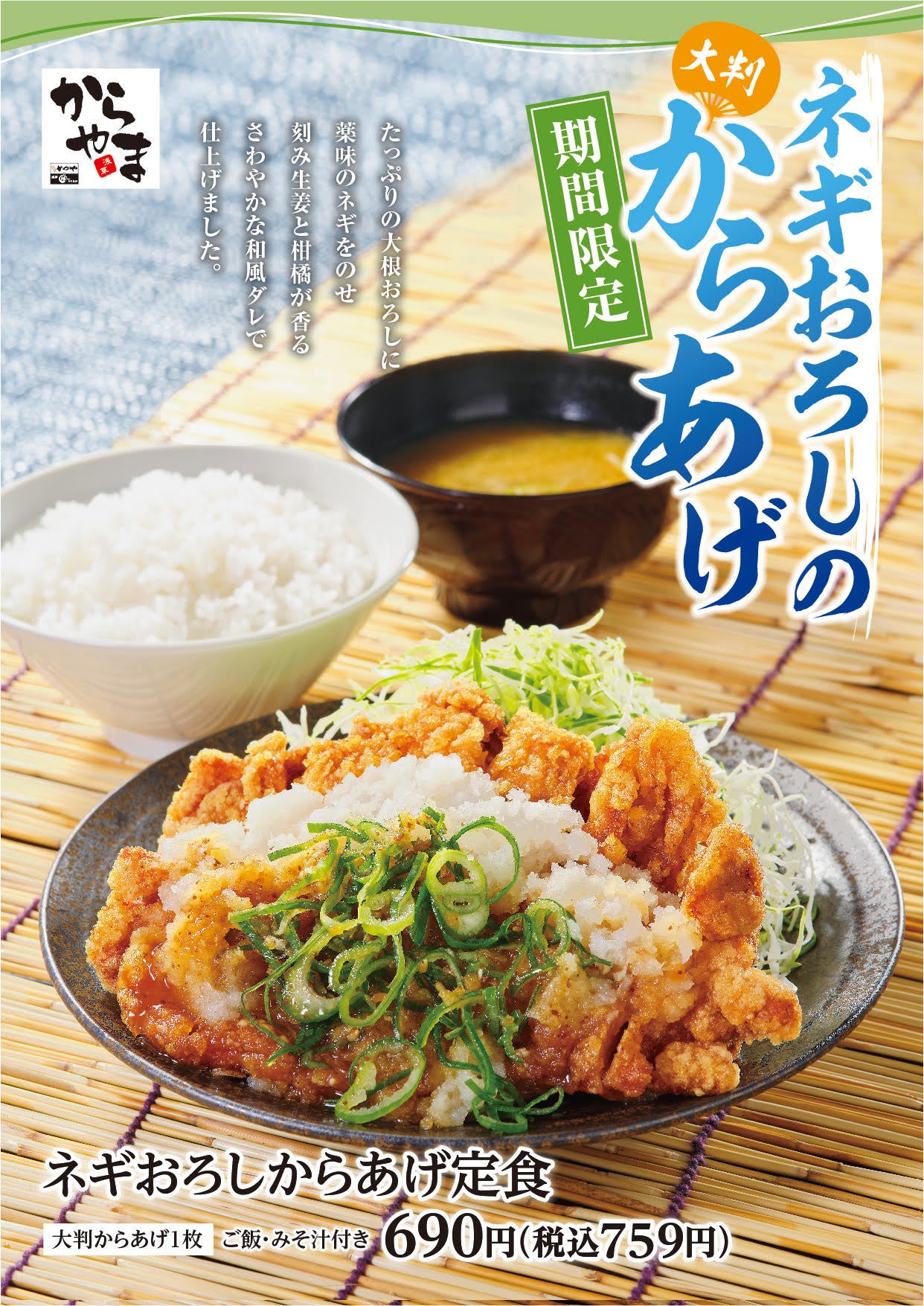 ■ネギおろしからあげ定食 690円(税込759円)