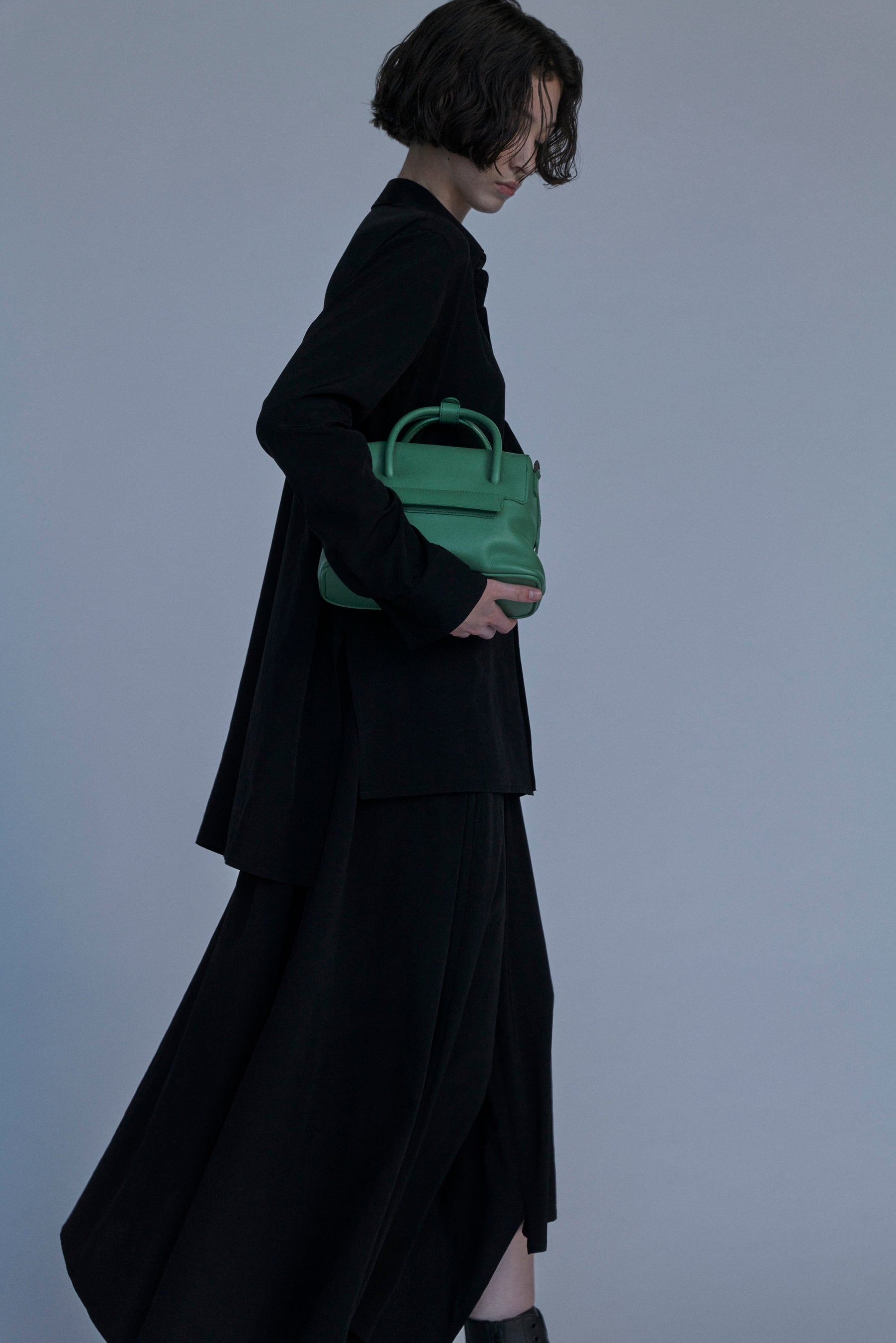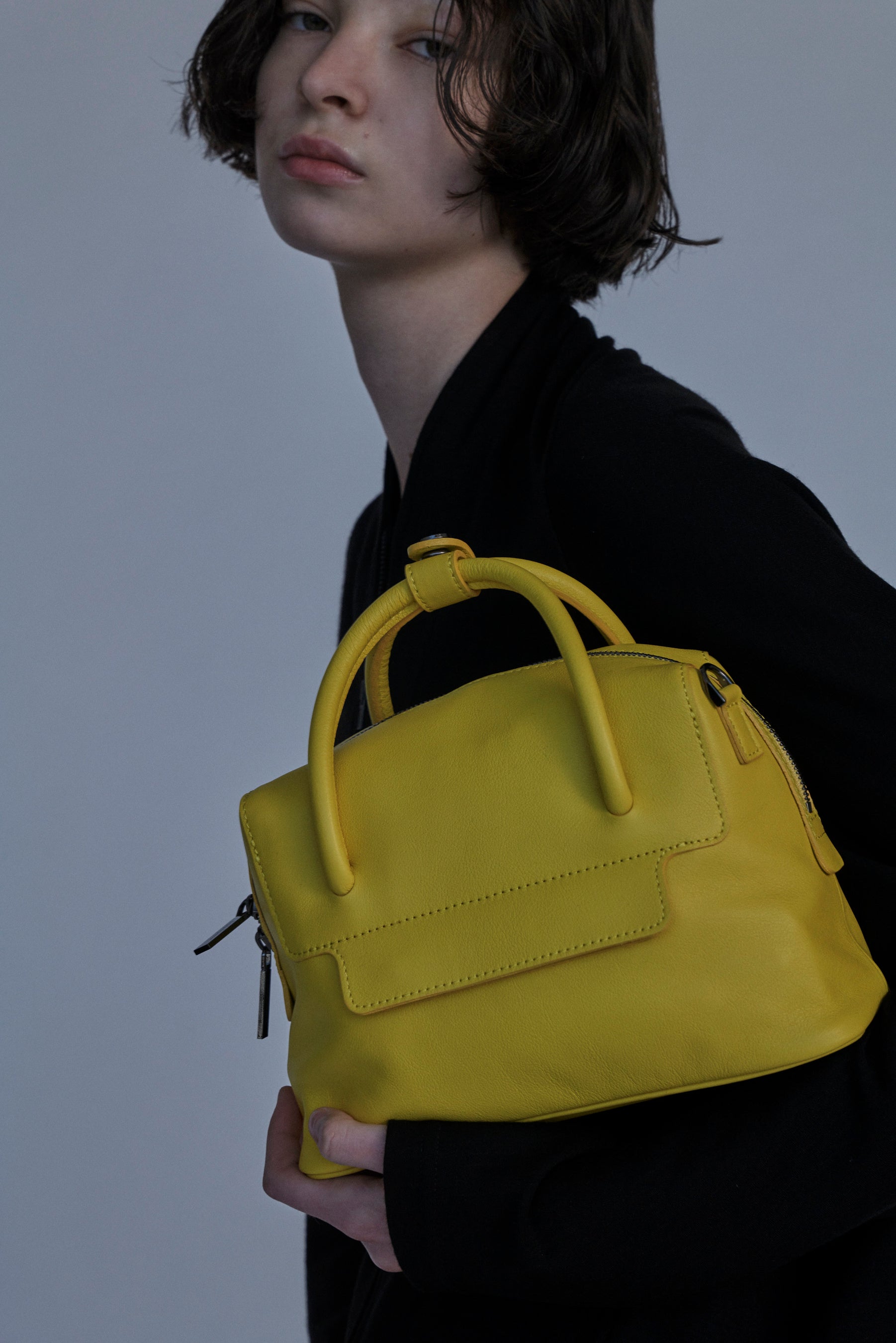 ブランド設立当時に発表したボストンバッグ型を2022年にリデザインし発表された「BOSTON BAG」を、新たにレモンイエローとミントの葉色のようなグリーンで表現。ディテールがアップデートされ、しなやかでハリのあるカーフレザーの質感がバッグの表情を豊かに、コンテンポラリーとクラシックの共存する印象をつくります。デイタイムに堅実な華やかさを持ち込む、軽やかなバッグ。花のカラーのようなフォルムのキーチャーム付き。