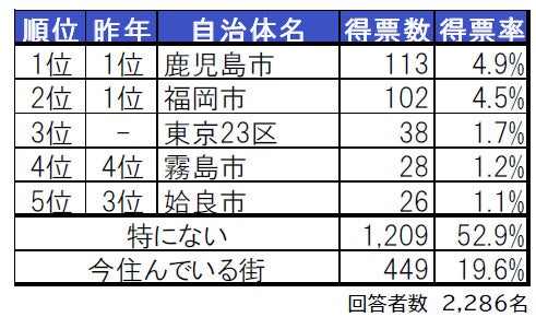 •「住みたい街(自治体)ランキング」は、鹿児島県居住者による全国の自治体を対象とした2022年回答を集計しました。