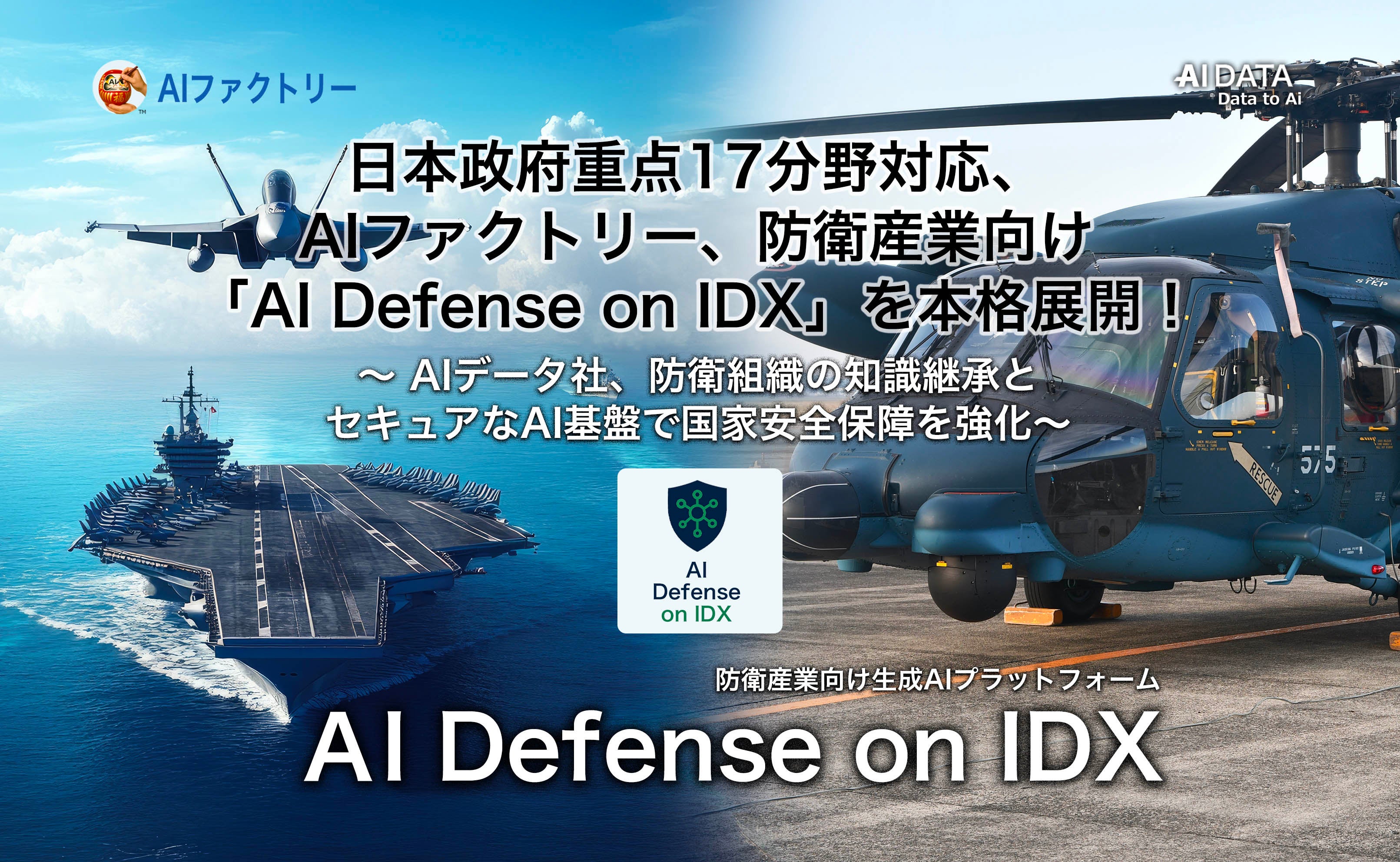 日本政府重点17分野対応、AIファクトリー、防衛産業向け「AI Defense on IDX」を展開! 〜AIデータ社、防衛組織の知識継承とセキュアなAI基盤で国家安全保障を強化〜