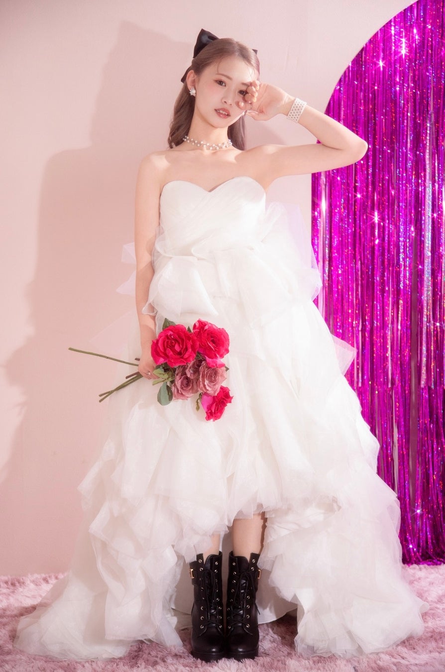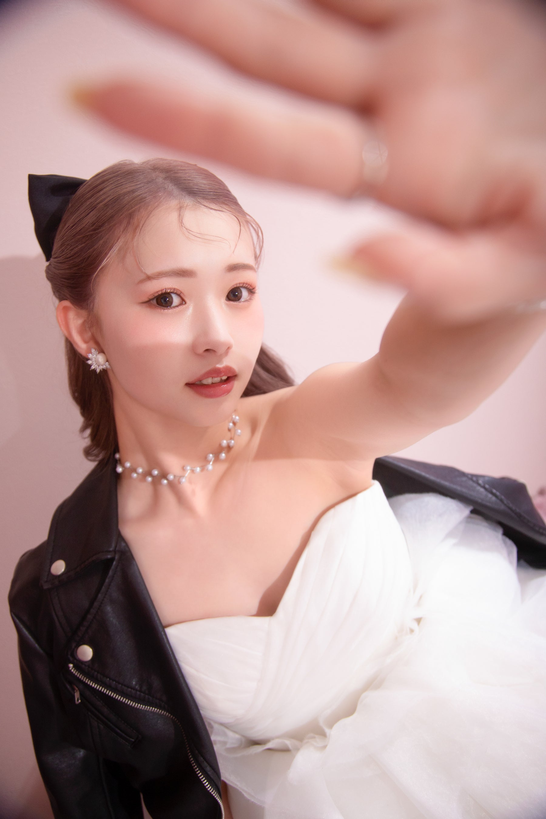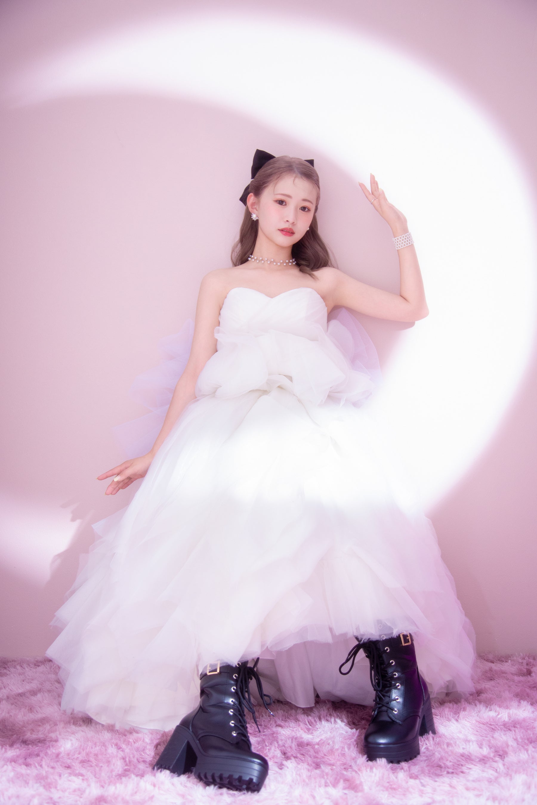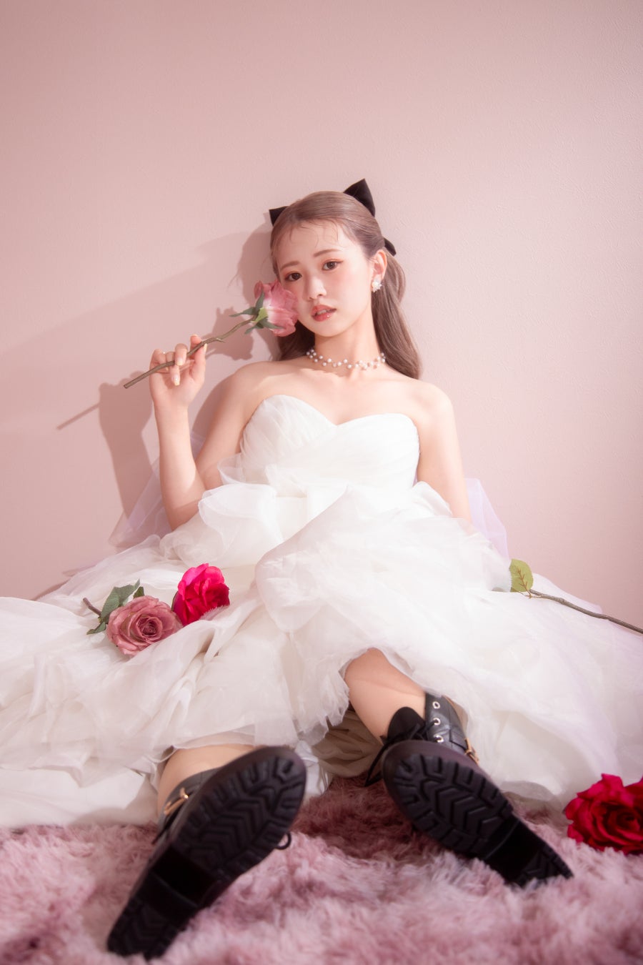 今回のスタイリングは、白ドレスを成人らしい着こなしをしたビジュアルが登場。