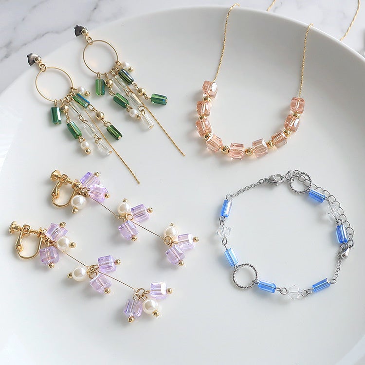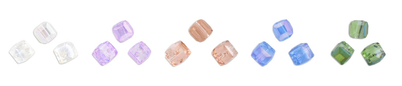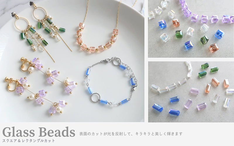 繊細な面取りカットが施されたレクタングル型とスクエア型のカットガラスビーズが登場いたしました。