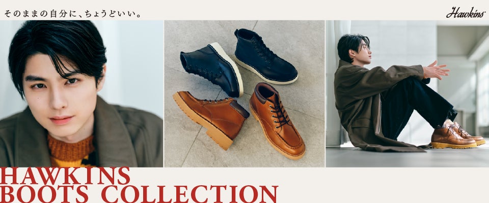 HAWKINS「BOOTS COLLECTION」俳優・本田響矢さん起用の新ビジュアル・ムービーを公開2025年11月6日(木)より全国のABC-MARTおよび公式オンラインストアにて展開