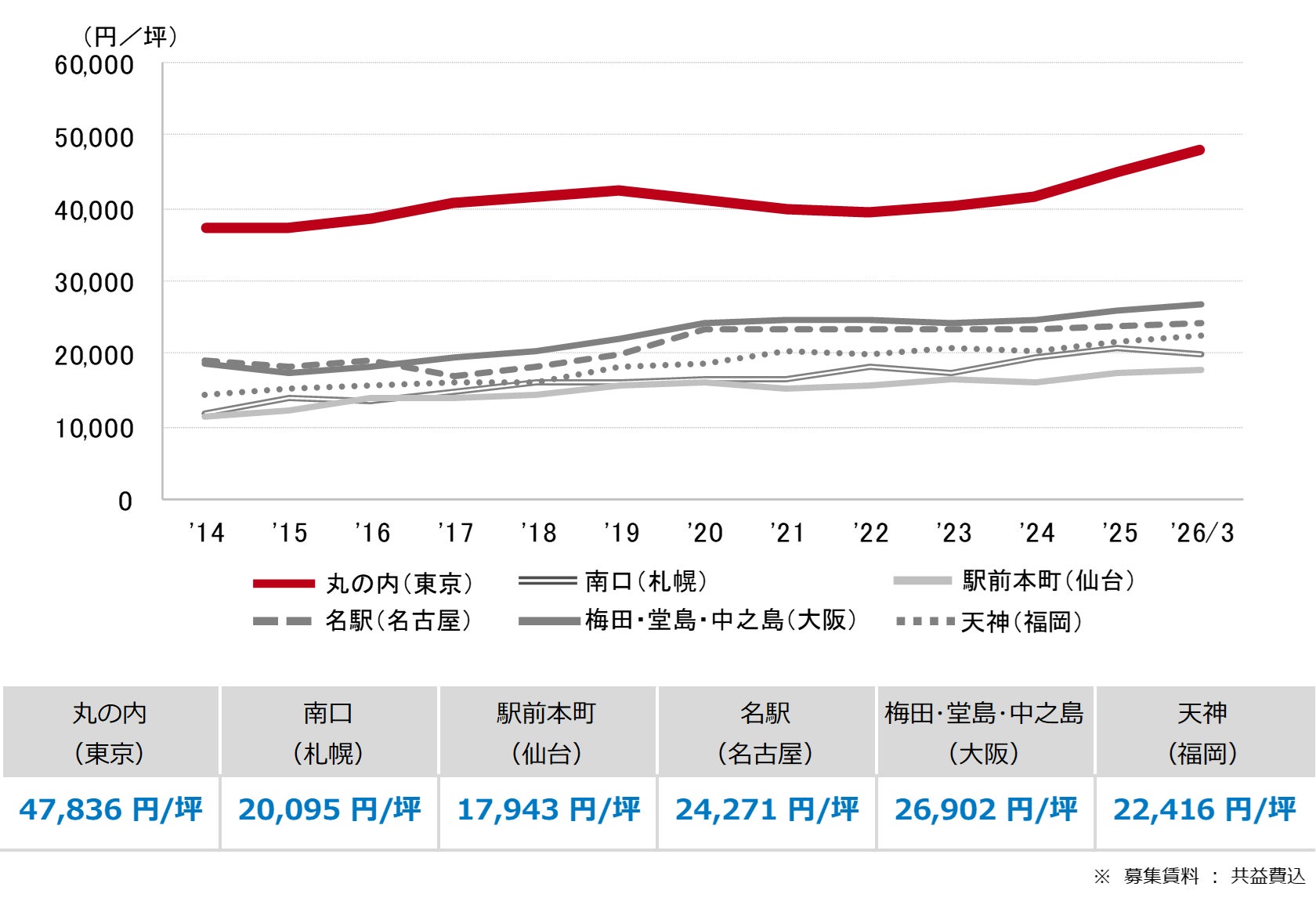 <募集賃料の推移(6大都市 大規模ビル・主要駅前地区)>