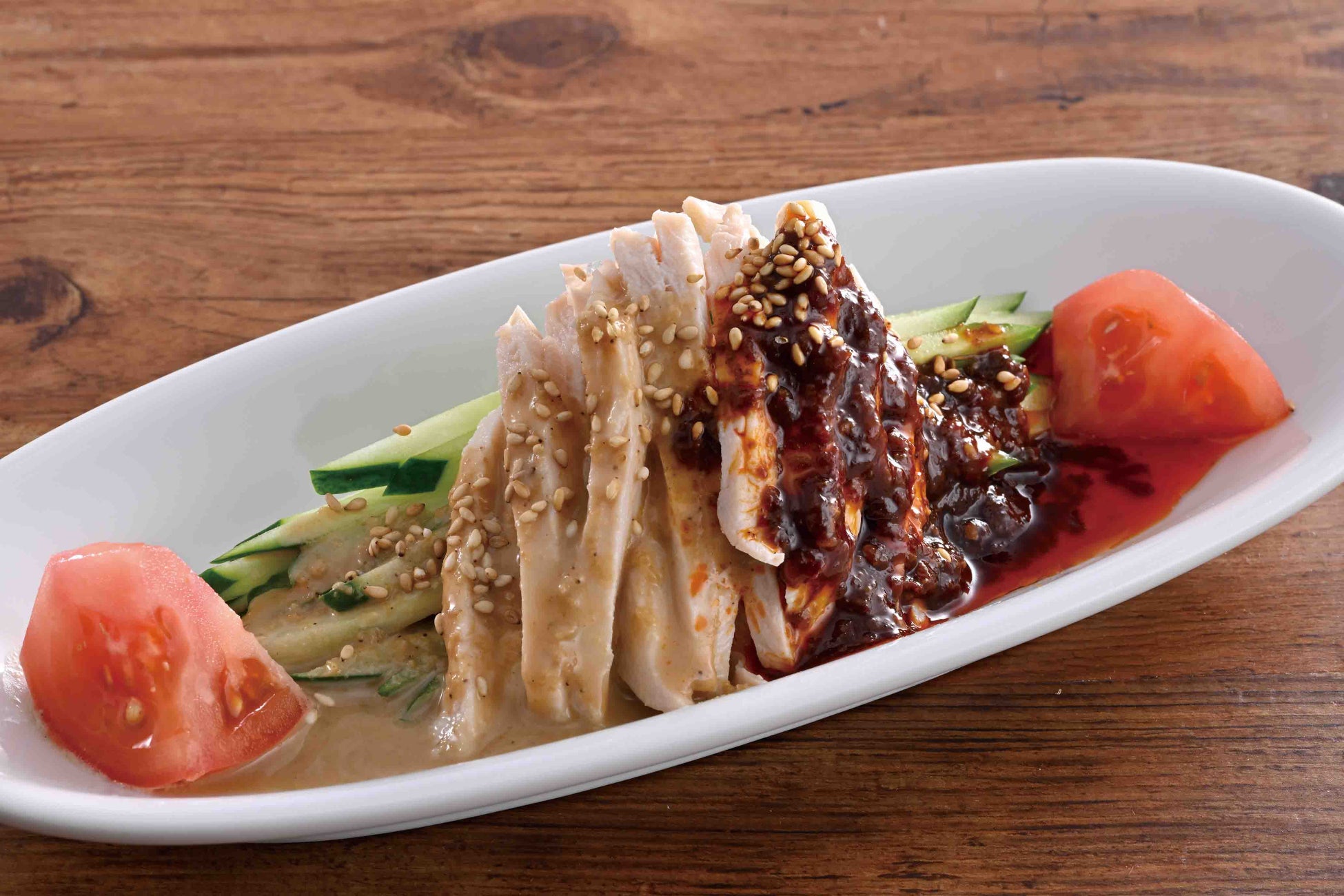 クリーミーな”ごまだれ”と、花山椒(ホアジャオ)の利いたパンチのある”よだれ鶏のたれ”の2つの味が楽しめます!