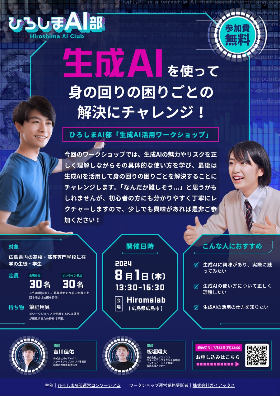 ひろしまAI部「生成AI活用ワークショップ」 〜生成AIを使って身の回りの困りごとの解決にチャレンジ〜 |