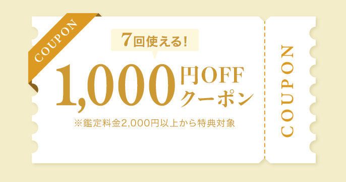 対象期間中は、『Chérir』をご利用の皆さま全員に最大7回使える“1,000円OFFクーポン”をプレゼントいたします。※鑑定料金が2,000円以上(税込)でご利用できます。