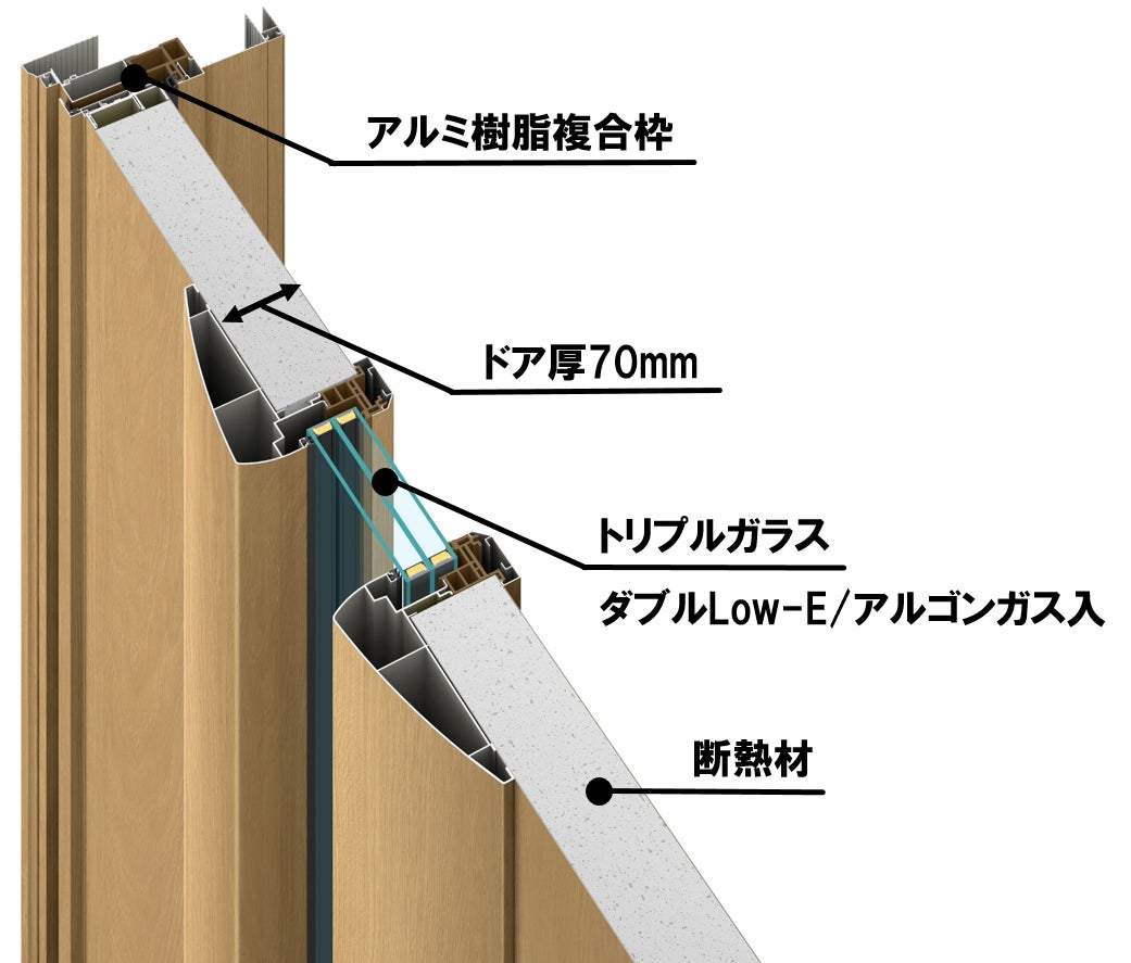 枠:アルミ樹脂複合 / 扉本体:鋼板断熱パネル |