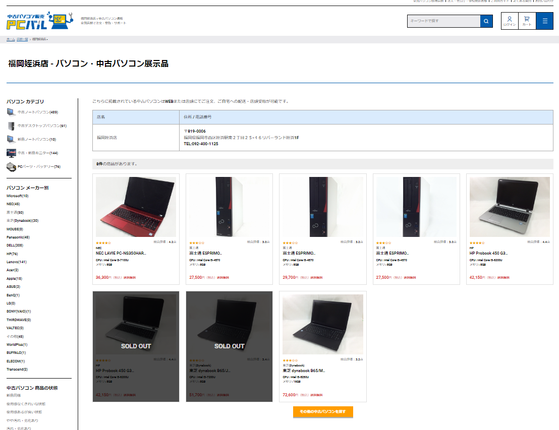 WEBで買って店舗で受け取れる、安心の中古パソコン販売サイトです。