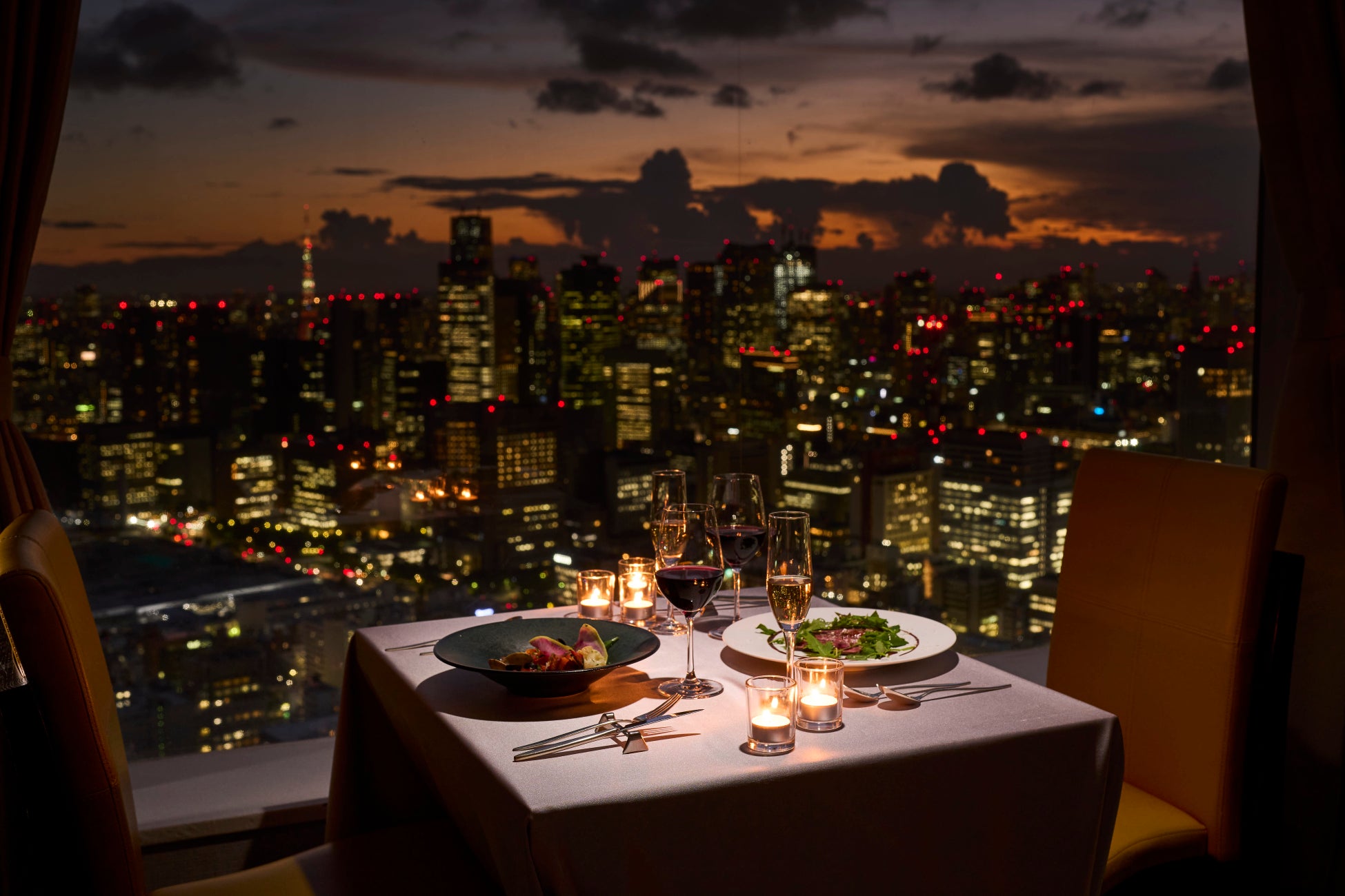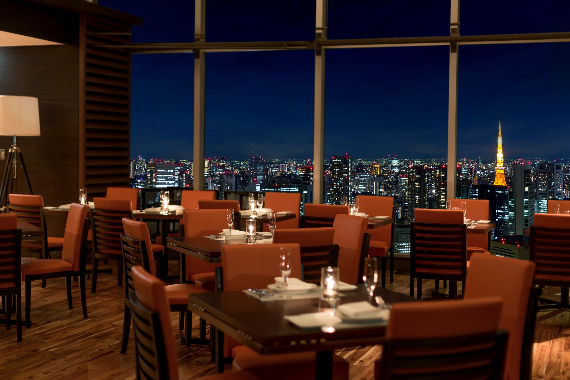 一面ガラス張りの店内で東京タワーやスカイツリーを一望