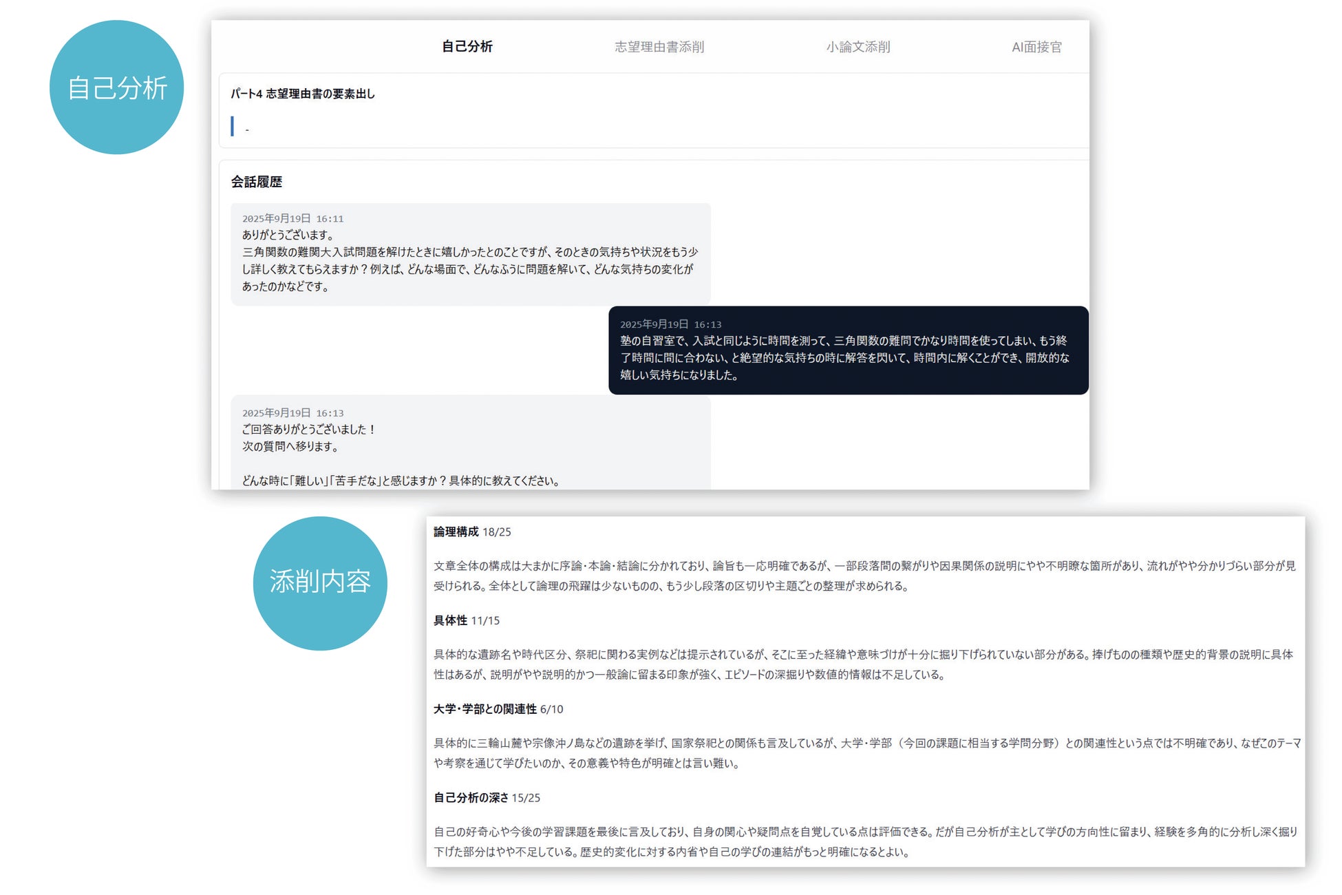 自己分析から、志望理由書の作成、小論文添削、AI面接対策まで、一貫した戦略のもとで指導を設計