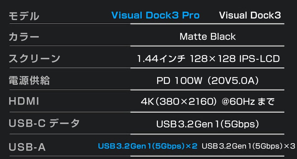 「Visual Dock3(ビジュアルドック・スリー)」は接続したデバイスの動作状況や温度をリアルタイムに表示できる、液晶ディスプレイ付き(6in1)USB-Cハブ。