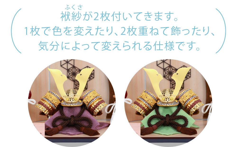鎧や兜を飾るのは、武家社会から生まれた風習です。武将にとっては、身を守る大切な道具であり、家のシンボルとしての精神的な意味合いのある宝物であったことに由来しています。それが厄除けのお守りとして飾るしきたりとなり現代に伝わってきました。