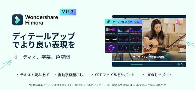 世界150か国以上で利用されるソフトウェアを手掛ける、株式会社ワンダーシェアーソフトウェア(東京都千代田区、代表:呉太兵)の、手軽にクオリティの高い動画が作れる動画編集ソフトWondershare Filmoraが、2022年5月14日(土)より、バージョン11.3にアップデートいたしました。今回のアップデートでは、音楽に合わせて波形が動く「オーディオスペクトラム」、ワンクリックで音声を字幕に変換する「自動字幕起こし」、ワンクリックでテキストをナレーションに変換して読み上げる「テキスト読み上げ」など、豊富な新機能を追加し、動画編集体験をさらに向上させました。