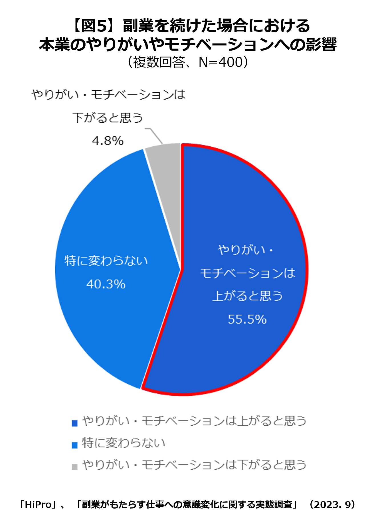 ■55.1%が、「副業をすることが本業に良い影響を与えている」と回答。さらに、55.5%が副業を続けた場合に「本業に対するやりがいやモチベーションは上がる」と感じていることが判明。
