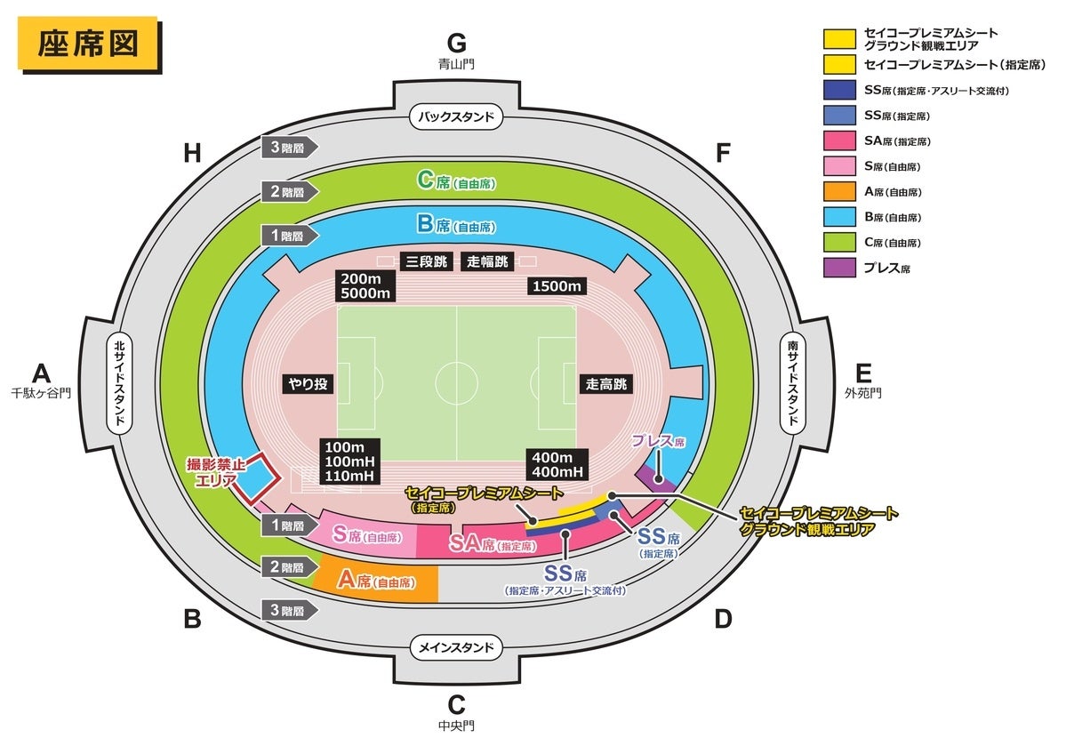 ※セイコーゴールデングランプリでは、応援エリアは設けておりません。応援をご希望の方は、B席をご利用ください。