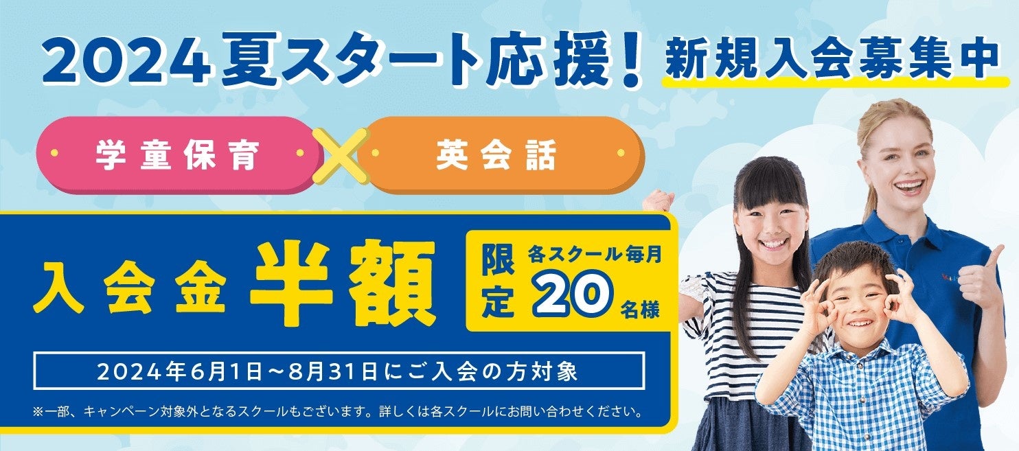 総合教育サービス事業の株式会社やる気スイッチグループ(東京・中央区、代表取締役社長:高橋 直司)が展開する英語で預かる学童保育「Kids Duo®(キッズデュオ)」は、2024年6月1日(土)〜8月31日(土)の期間でご入会いただいた方を対象に期間限定で入会金(通常23,100円・税込)が半額になる「2024夏スタート 応援キャンペーン」を実施いたします。※1