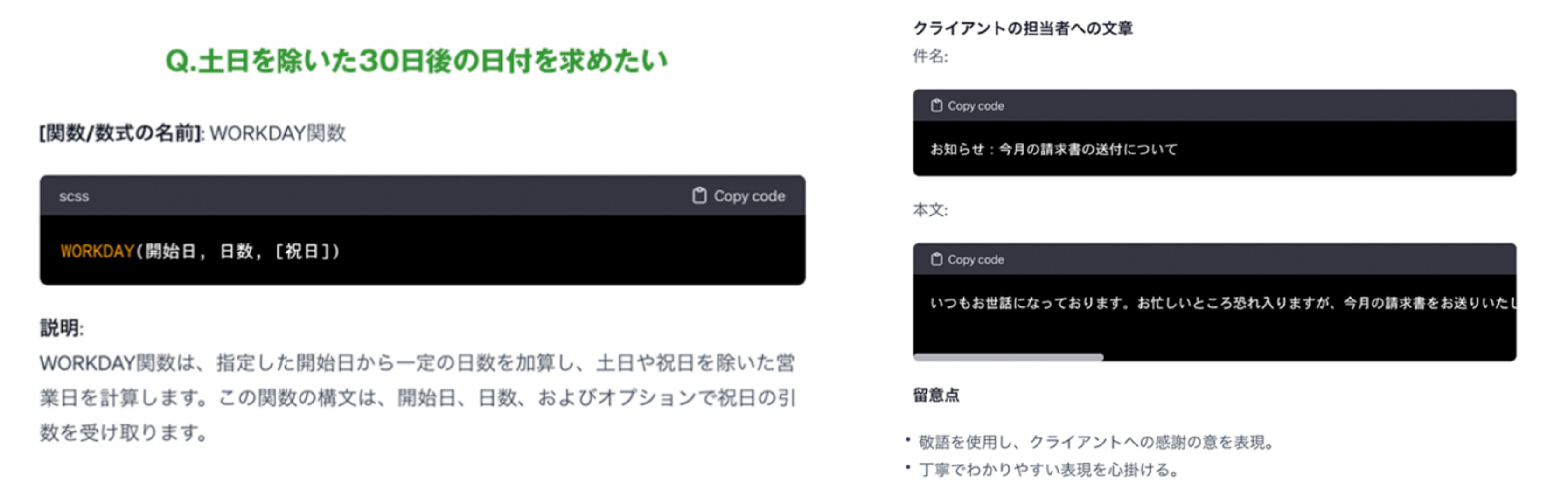 Excelで使える関数を生成 | OutlookでTPOに合った表現で文章を修正 |