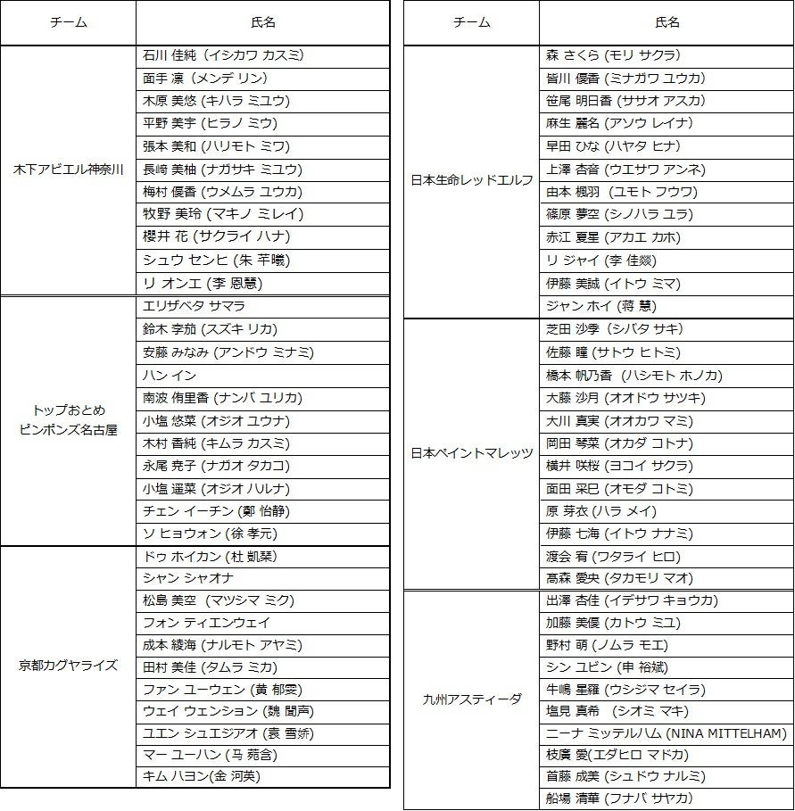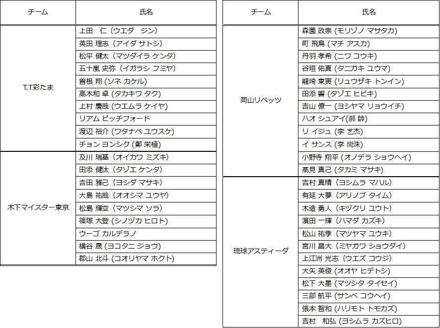 Tリーグでは、2022-2023シーズン 登録完了選手を以下の通りお知らせいたします。