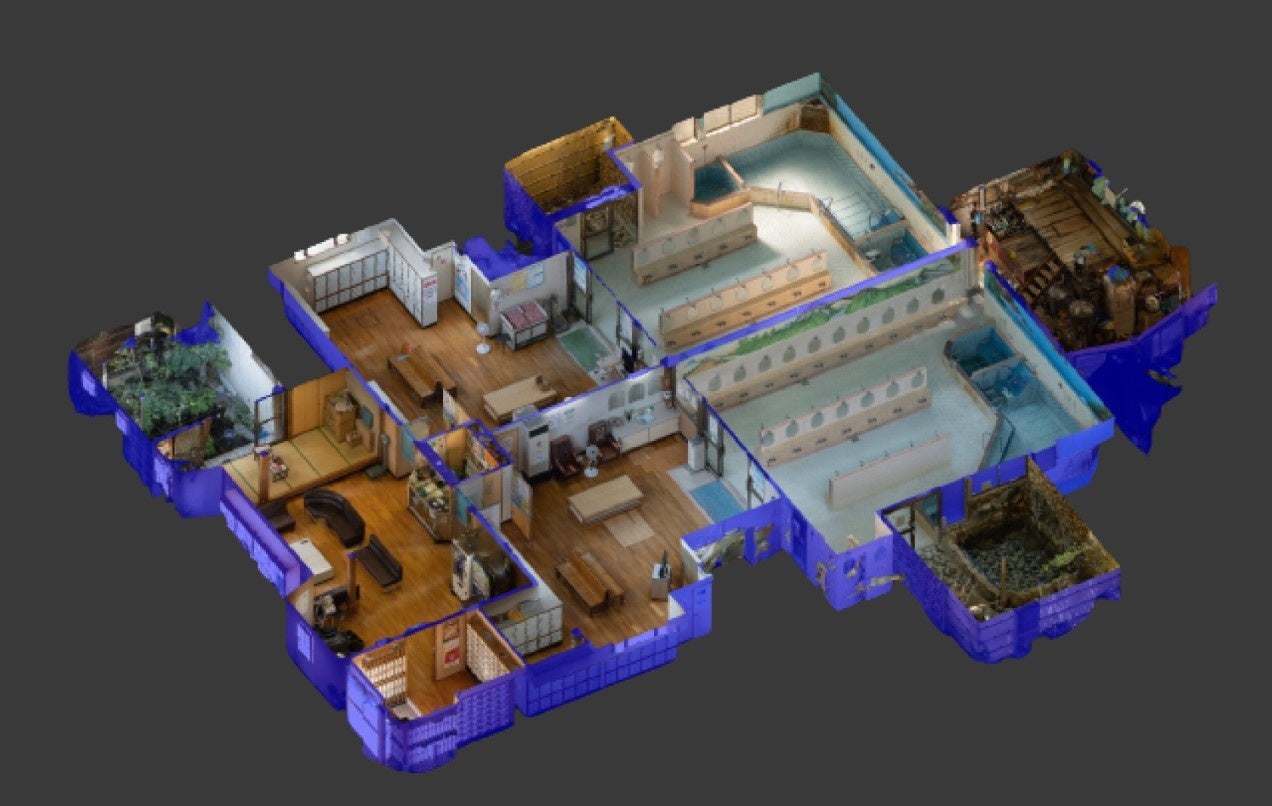 令和5年度、TOKYOスマート・カルチャー・プロジェクト※で、江戸東京たてもの園に収蔵されている銭湯「子宝湯」の3Dデータを作成しました。100地点の赤外線計測による点群データと、6,000枚に及ぶ画像を重ね、細かな部分の形状や部材の質感が記録されています。その3Dデータを手軽に楽しめるARコンテンツに続き、仮想空間(メタバース)上で「子宝湯」を見られるオンライン展覧会を開催します。