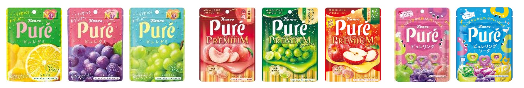 『ピュレグミ』は、2002年の発売以来、幅広い世代の方からご支持いただいているカンロの人気商品です。フルーツのおいしさを引き出す“すっぱいパウダー”と独自の“果肉食感”により、噛むほどにフルーティーな甘ずっぱいおいしさが広がり、食べた瞬間こころが晴れるように、ちょっとハート(気持ち)があがるハート型のグミです。
