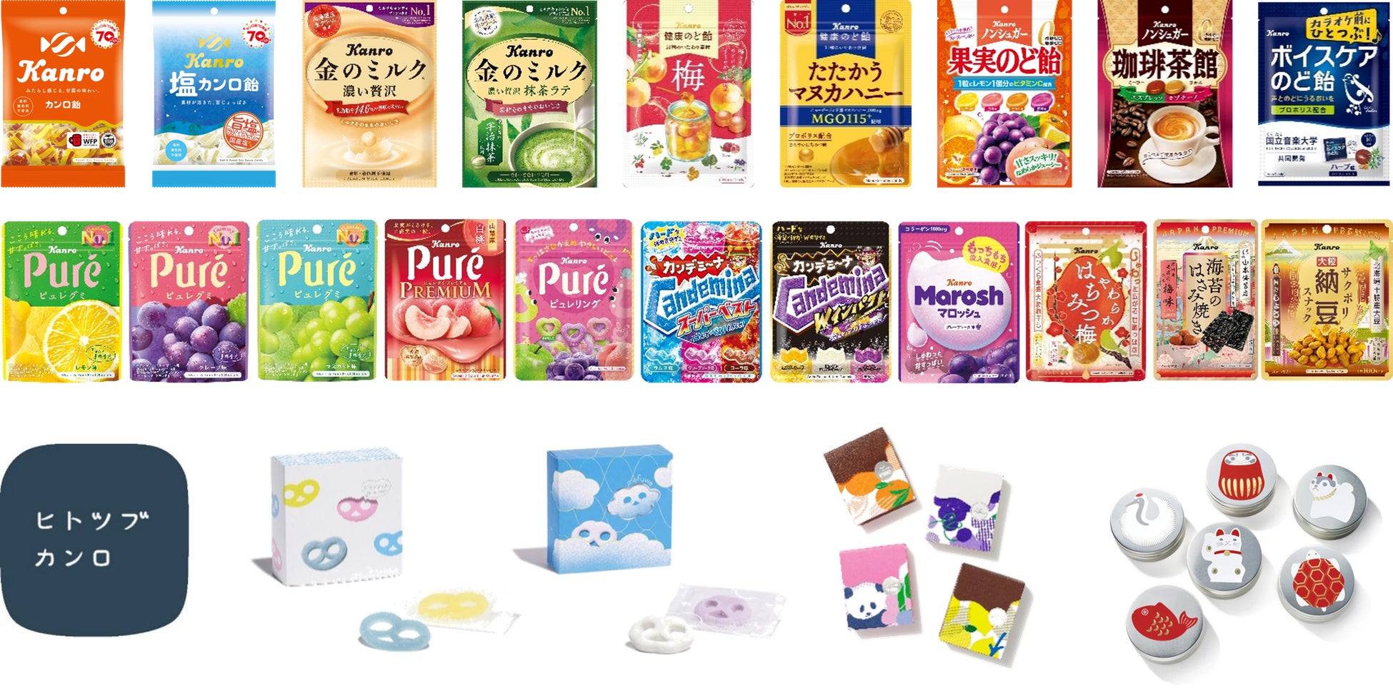 当社は1912年の創業以来、社名になっている「カンロ飴」を始め、菓子食品業界で初ののど飴となる「健康のど飴」、ミルクフレーバーキャンディ市場売上No.1ブランド※1「金のミルク」、大人向けグミの先駆けでありグミの売上トップブランド※2である「ピュレグミ」など、生活者の皆さまから愛される商品を創り続け、成長してまいりました。直営店「ヒトツブカンロ」では、「ヒトからヒトへ つながる ヒトツブ」をコンセプトにキャンディの魅力を発信しております。