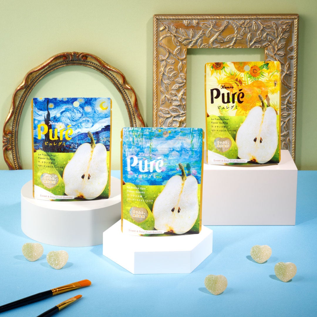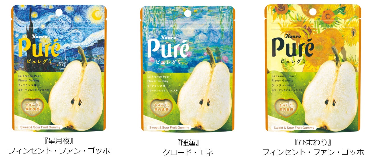 そんなピュレグミから、モネの『睡蓮』、ゴッホの『星月夜』、『ひまわり』の3つの印象派絵画をパッケージに採用した「絵画をめぐるピュレグミ ラ・フランス」を発売します。