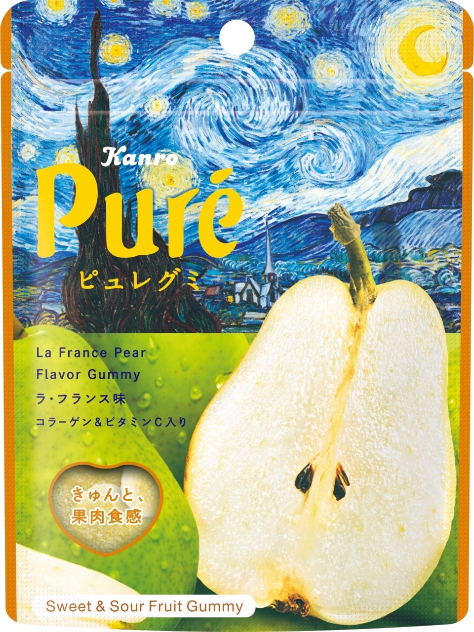 《カンロのグミでは初、パッケージに有名絵画を採用 芳醇なラ・フランスがとろける、秋の新味》