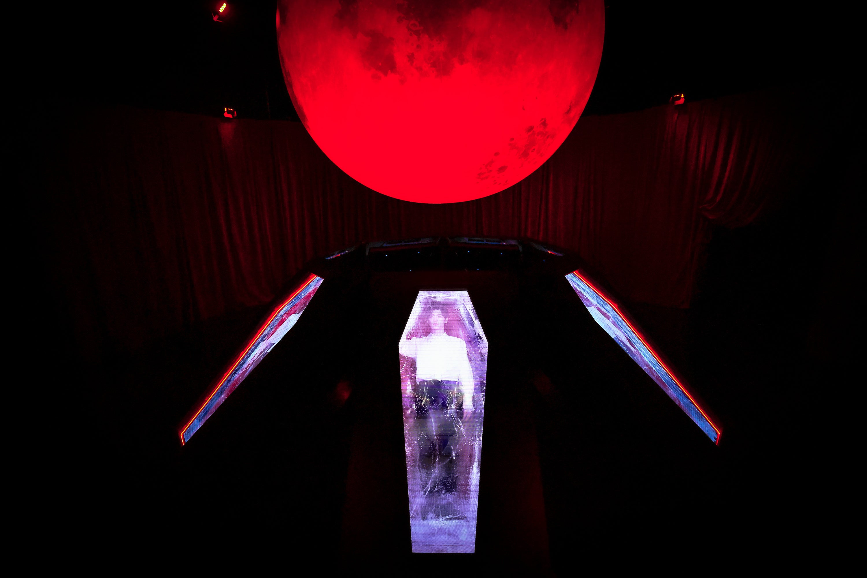 ハイライトとなる「第五章:告白の中庭」では、3D対応LEDディスプレイ・システム「Immersive LED System」を採用。幅10.2m×高さ4.8mの巨大スクリーンに、アーティストがその場に実在するかのような驚異の実像感を現出させます。
