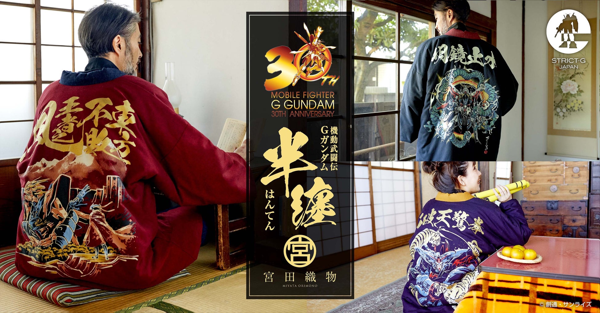 株式会社バンダイ ライフスタイル事業部では、ガンダムの世界観を取り入れたアパレルショップ「STRICT-G」にて、2024年11月23日(土)より、『機動武闘伝Gガンダム』30周年を記念し、大正二年創業の老舗メーカー宮田織物とのコラボによる「わた入れ半纏(はんてん)」3種6型を販売、バンダイナムコグループ公式通販サイト「プレミアムバンダイ」( https://p-bandai.jp/ )では、2024年11月22日(金)13時より予約発売を開始いたします。
