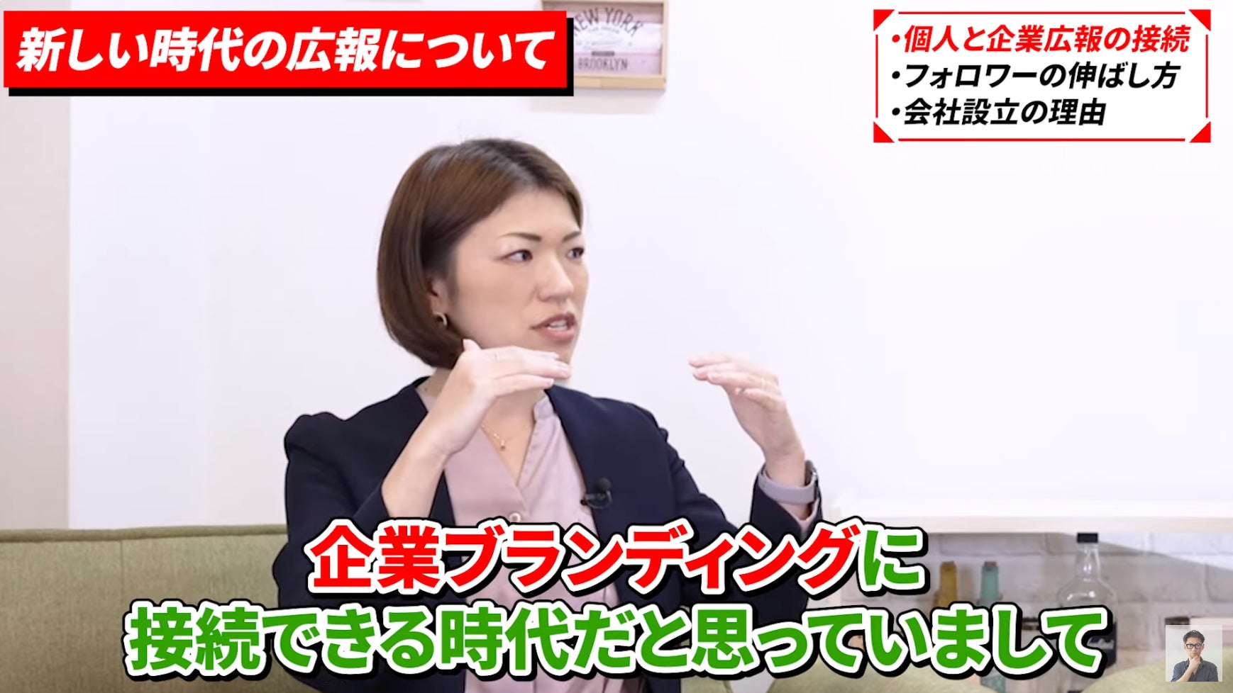 個人のセルフブランディングと企業ブランディングが接続する時代になった今、「個人名」「顔出し」「社名」を出すことで、個人のファンから会社のファンにつなげることができると考えています。これが採用、お客様へのPRにもつながっていることについて語りました。