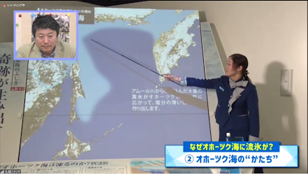 北海道のオホーツク海側は、冬になると流氷に覆われます。でも太平洋や日本海は凍らないのになぜオホーツク海だけが凍るのでしょうか?オホーツク海は塩分の薄い層、濃い層が二重になっていること、シベリアからの北風でオホーツク海が冷やされることなどの条件が重なることによって起こる現象なのです。まさに「奇跡の流氷」と呼ばれる訳を学びました。