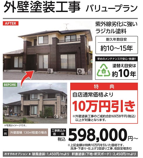 ※外装塗装工事のご成約合計69万8千円(税込)以上が対象となります。
