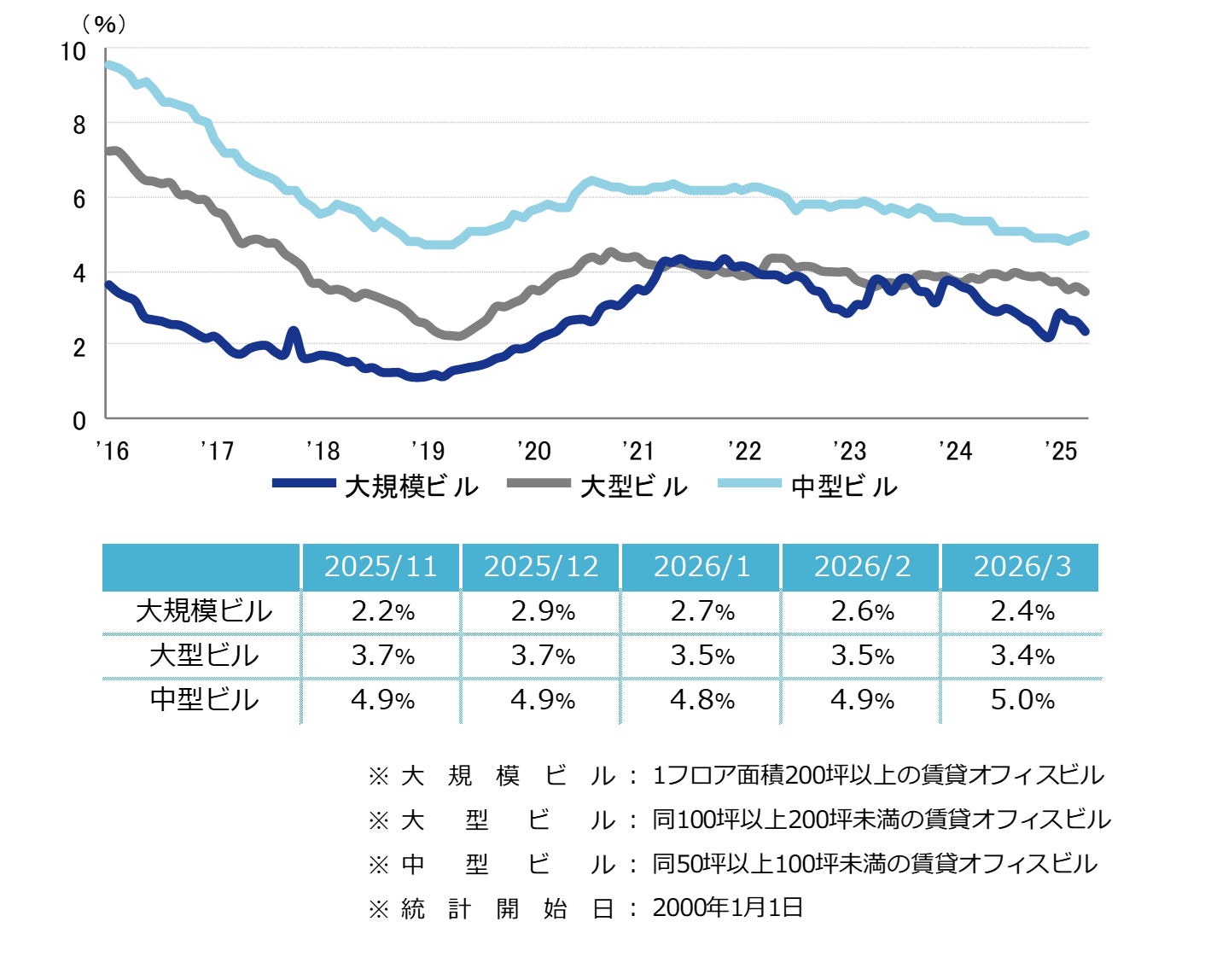 <空室率の推移(6大都市 大規模ビル)>