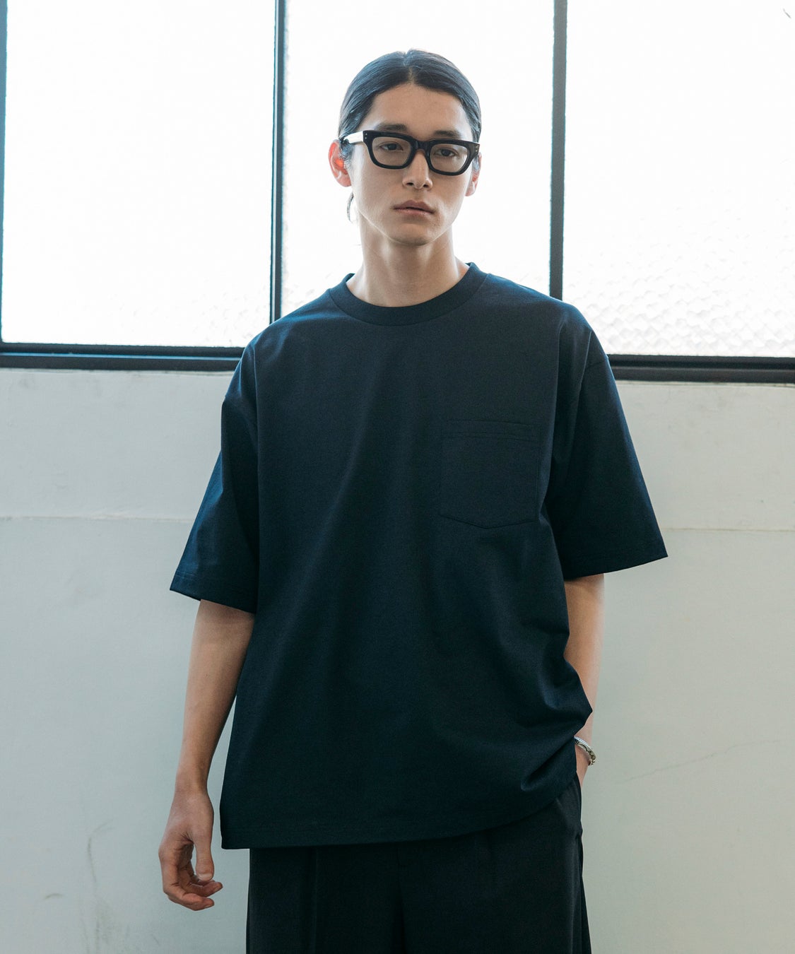 程よい着用感が出るように硬さを調整しヘビーウェイトコットン風に仕立てた天竺。針感のあるハードな表情ながら、昨シーズンに比べストレッチ性が向上し、より着心地を改善しました。