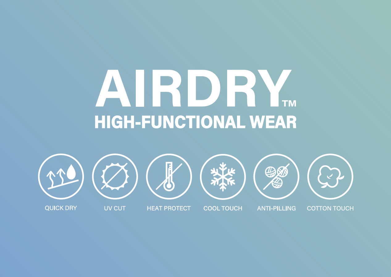 FREAK'S STOREが開発した、吸水速乾性・遮熱性に優れ紫外線ダメージからも肌を守る高機能素材「AIRDRY」を搭載したカットソーが去年に続き今年も登場。特殊な糸構造・紡績方法による機能性と、ポリエステル100%ながらも毛玉になりにくいコットンのような風合いを両立したアパレルウエアを展開する。