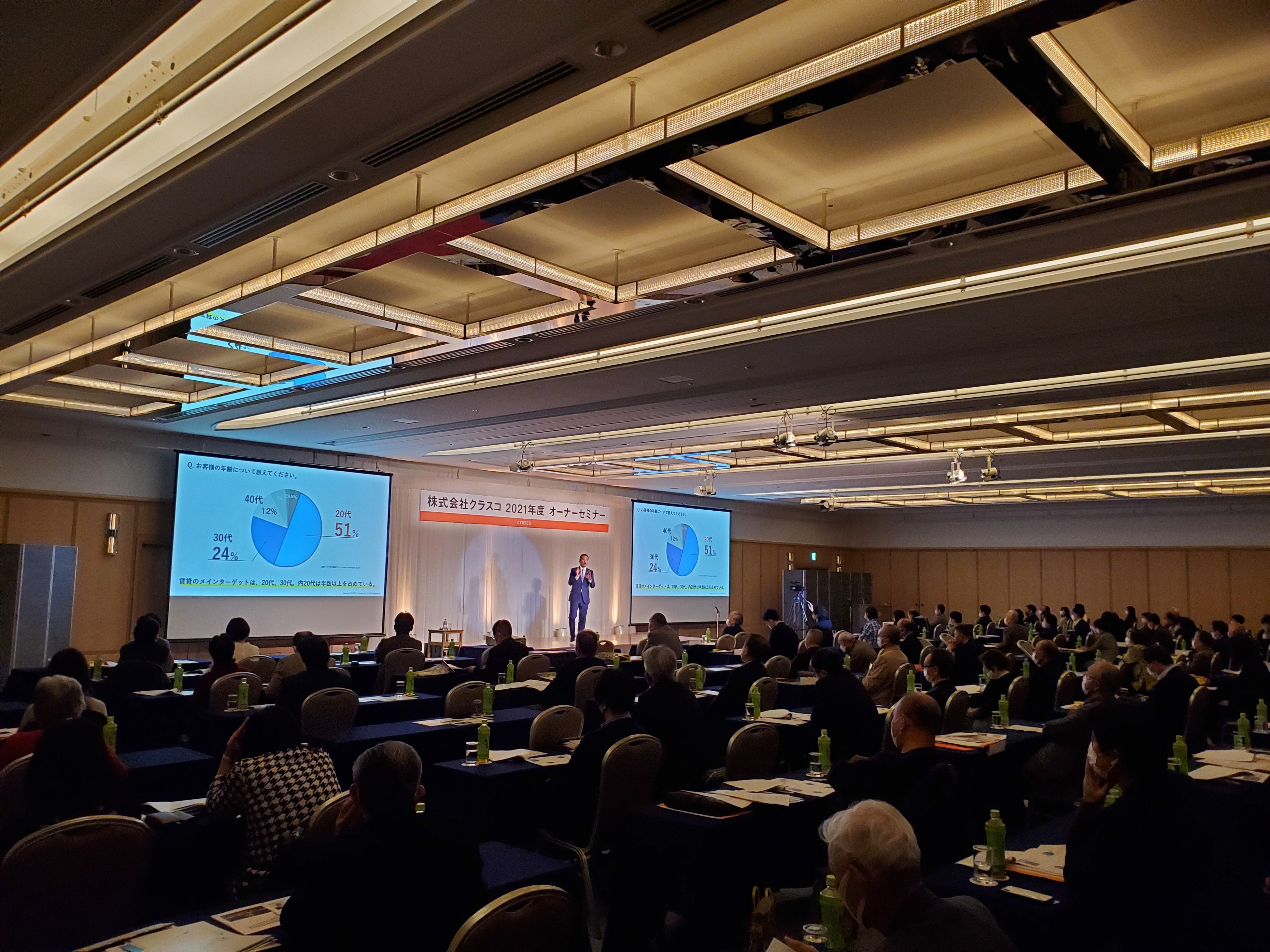 株式会社クラスコ(本社:石川県金沢市/代表取締役社長:小村典弘 以下、クラスコ)は、2021年12月19日(日)にホテル日航金沢 孔雀の間・鶴の間(石川県金沢市)にて、クラスコ年間最大のオーナーセミナー「賃貸経営戦略セミナー」及び2021年度クラスコオーナー会を開催し、総勢約180名(セミナー参加者121名、懇親会参加者154名)の石川県に不動産を持つ賃貸オーナーが参加し、LINEによる新規オーナーサポートサービス開始を発表しました。