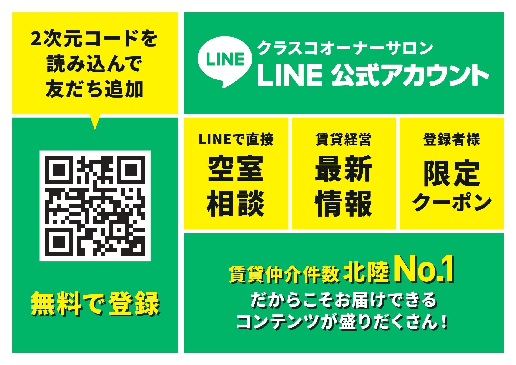 ▼石川県に物件を持つ賃貸オーナー向けクラスコオーナーサロン公式LINEアカウント友達登録は下記から