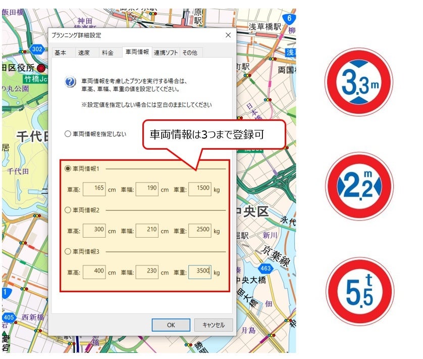 || 車高・車幅・車重の規制を考慮したルート探索を実現︕