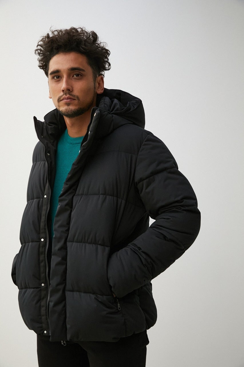 ウール混のニット素材に、ニードルパンチを施した生地を使用。見た目よりも軽く膨らみがあり、風合いも柔らかいのが特長。ニードルパンチの加工を調整し、ご家庭の洗濯機で洗えるようにしました。