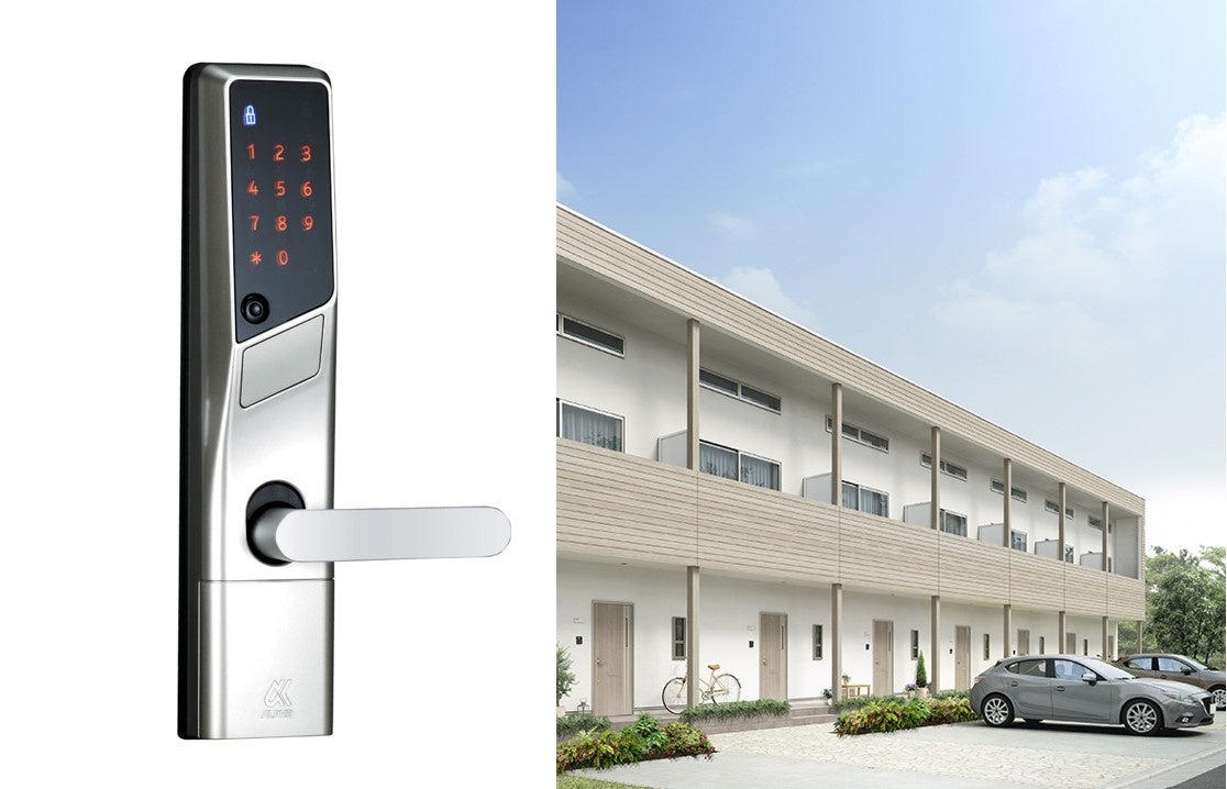 従来の「リジェーロα」の「ランダムテンキー」では、手動錠もしくはテンキー入力での解錠操作でしたが、電気錠『edロックPLUS』では、共用エントランスと各住戸が連動した専用のカードキーもお選び頂けるようになります(※2)。セキュリティ性の観点から共有部を持つ新築向けのアパートが増えるなか、1枚のカードキーで共用エントランスと各住戸のドアの解錠ができるため、利便性が大幅に向上します。