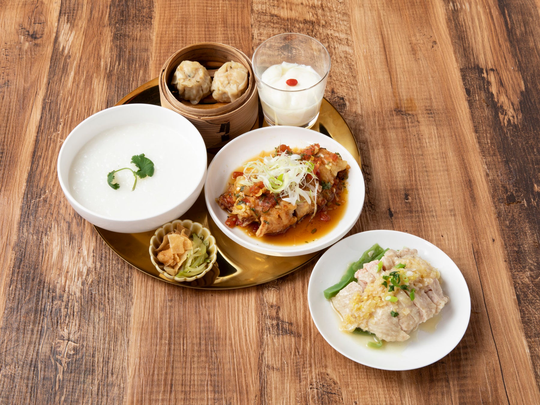 「鶏白湯中華粥と油淋鶏&鶏焼売の金盆ランチ」1000円(税込)