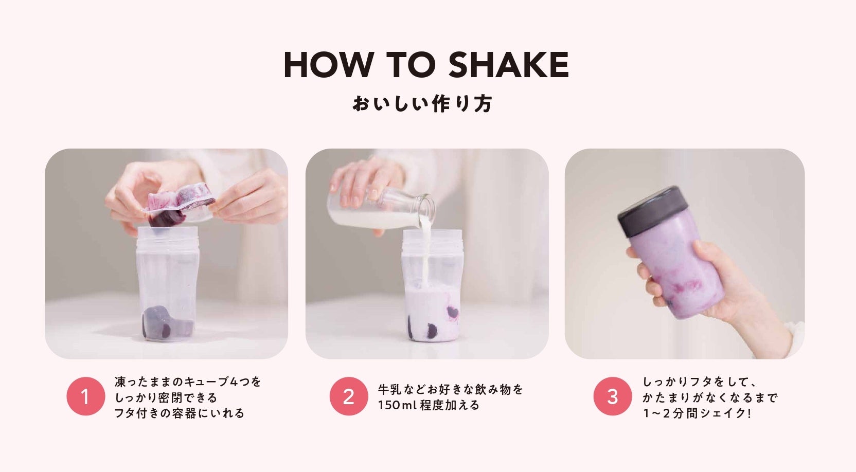 ミキサー不要で1分振るだけ、イエナカスムージーの新提案!濃厚スムージーが簡単に作れる、新発想の冷凍スムージーキューブ「Frutte!」新発売