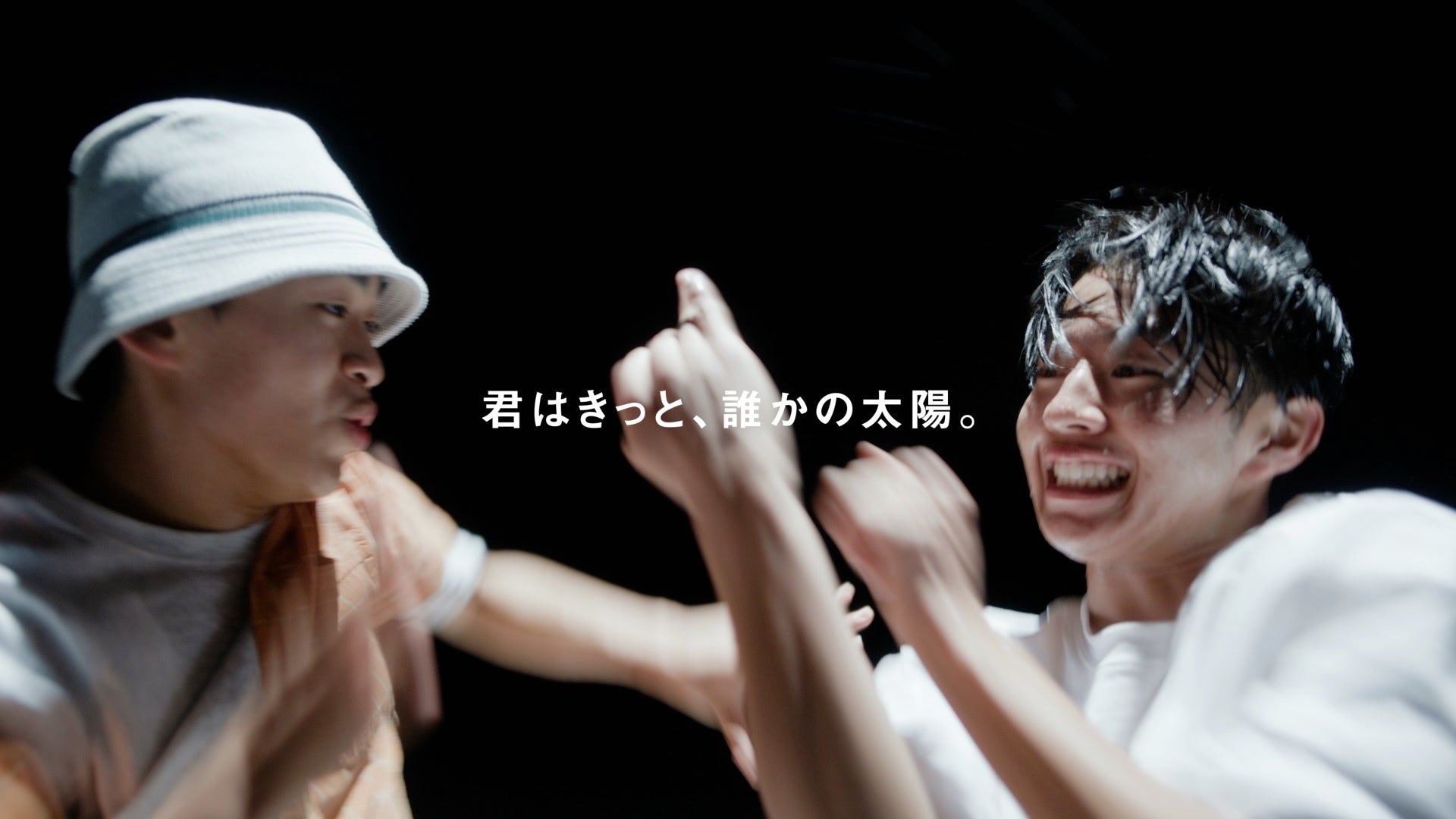 本CMは、「君はきっと、誰かの太陽。」をキーメッセージに、メインキャストの原口武蔵さんと勇太がダンスを通じて、切磋琢磨し合い、互いに影響を与え合いながら成長していくストーリーとなっています。その中で、汗をかくことの楽しさや、流した汗は、きっと誰かが見ており、気づかないうちに他者に良い影響を与えていく。そして汗をかいた人は、周囲を照らし、いつしか他者にも汗をかきたいと思わせる太陽のような存在になるというメッセージを描いています。武蔵さんと勇太さんは実際の現実世界でも、幼い頃から切磋琢磨してきた仲。長く共に高め合ってきた二人だからこそ、表現できる力強いダンスを披露しています。