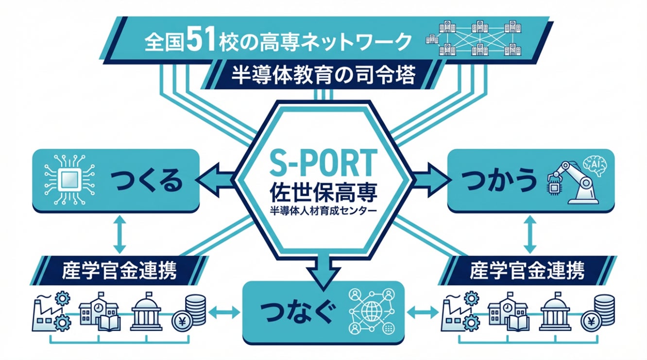 独立行政法人 国立高等専門学校機構(東京都八王子市 理事長:谷口 功 以下、「高専機構」)は、佐世保工業高等専門学校(長崎県佐世保市 校長:下田 貞幸 以下「佐世保高専」)に佐世保工業高等専門学校半導体人材育成センター(S-PORT※)を令和7年10月に新設し、令和8年3月17日(火)に開所式および記念シンポジウムを開催します。