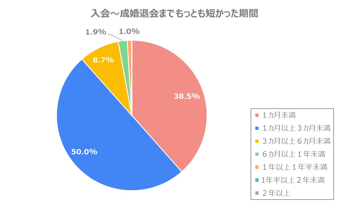 - 成婚退会までもっとも短かった期間、約9割が3カ月未満と回答