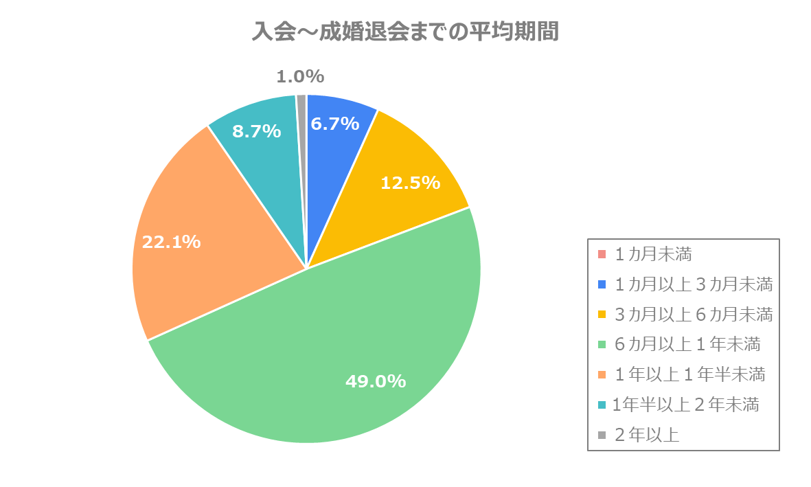 - 成婚退会までの平均的な期間は1年未満