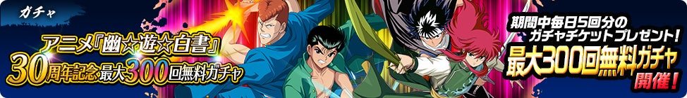 - 「アニメ『幽☆遊☆白書』30周年記念 300回無料ガチャ」