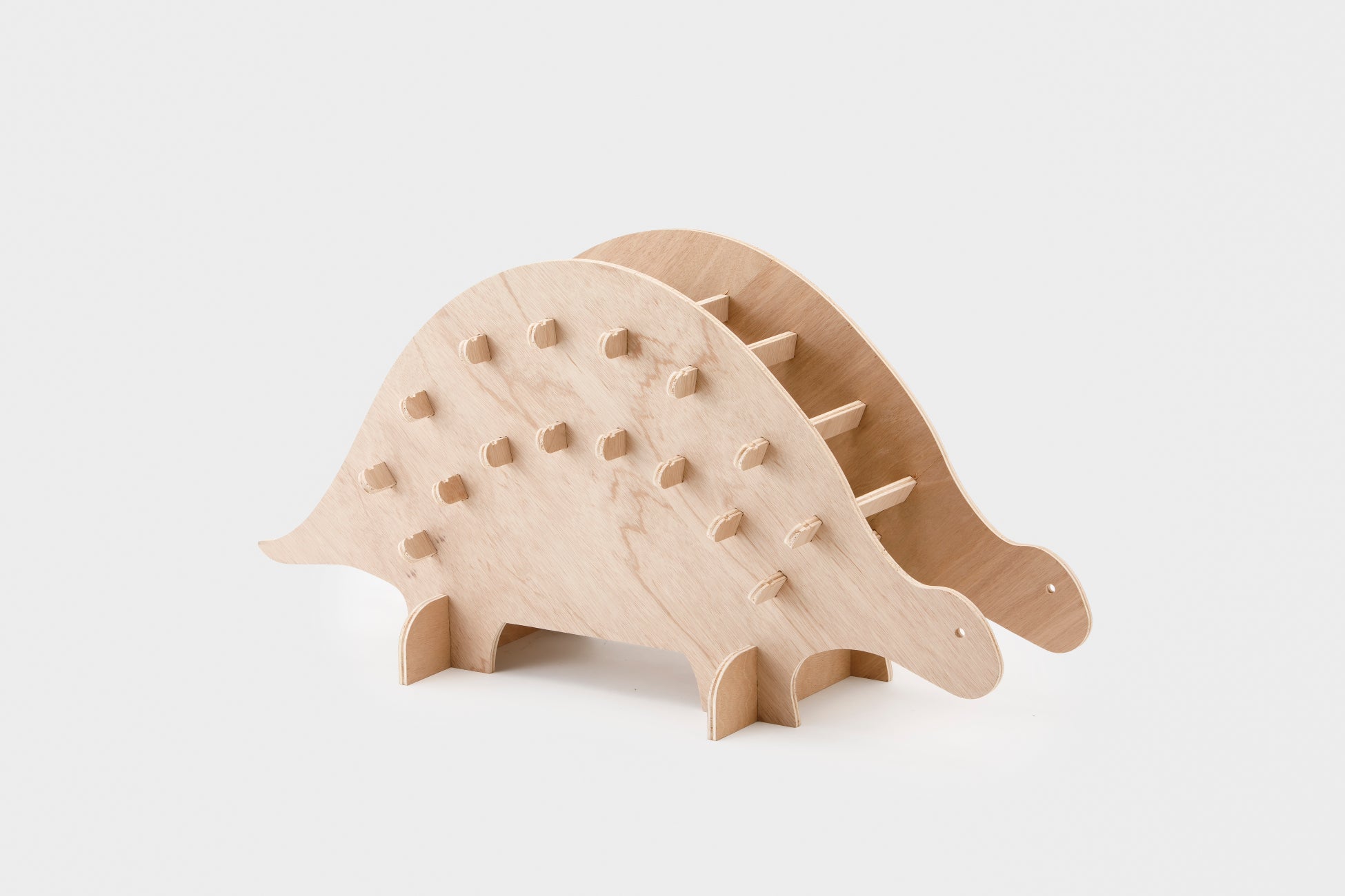 雨の日、ひょっこり現れるのは…カサを背負った恐竜です。今日も静かにあなたの傘をお預かりします。ちょっと憂うつな雨の日も、サウルスたちがいれば少しハッピーになるかもしれません。背中には約15本の傘を収納するコンパクトサイズ。置く場所の雰囲気に合わせて防水マットや人工芝を敷けば、床も濡れずに安心です。折りたたみ傘も引っ掛けやすい、工夫された差し込み棒が付いています。しかも、組み立ては簡単3ステップ!子どもでも迷わず完成できちゃう、やさしい設計です。